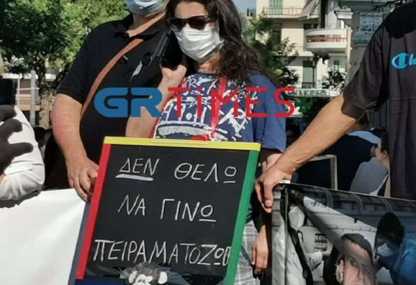 Μερίδα των συγκεντρωμένων ωστόσο κρατούσε πλακάτ με συνθήματα όπως: «Δεν θέλω να γίνω πειραματόζωο», «Να μπουν σε αναστολή οι 300 της Βουλής».