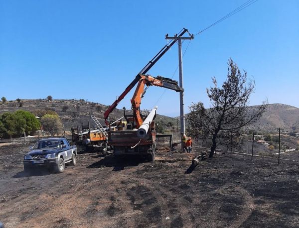 The Minister of Environment and Energy, Costas Skrekas, and the Deputy Minister, George Amyras, visited, this morning, the Municipality of Mantoudi – Limni – Agia Anna, which was particularly affected by the fires. During their visit, they met with the Mayor, George Tsapourniotis, and discussed the immediate actions that should be taken for the full restoration of electricity, as well as the reconstruction of the affected areas.