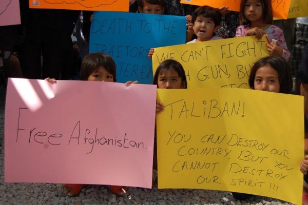 Συγκέντρωση ενημέρωσης και διαμαρτυρίας ενάντια στην επιβολή του καθεστώτος των Ταλιμπάν στο Αφγανιστάν οργανώθηκε από Αφγανούς αιτούντες άσυλο μέσα στον καταυλισμό του προσωρινού ΚΥΤ στον Καρά Τεπέ.