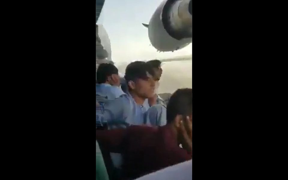 Νέο βίντεο που είδε το φως της δημοσιότητας, εικονίζει τους Αφγανούς που προ δύο ημερών είχαν σκαρφαλώσει και γραπωθεί στην άτρακτο του αμερικανικού αεροσκάφους, να βιντεοσκοπούν την απέλπιδά τους προσπάθεια για διαφυγή, καταγράφοντας, ουσιαστικά, και τις τελευταίες τους στιγμές.