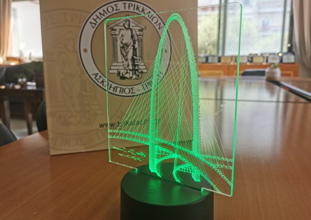 Αντηλλάγησαν δώρα, με τον κ. Παπαστεργίου να χαρίζει το σύμβολο της πόλης, τον παγκοσμίως γνωστό Ασκληπιό, τσίπουρο φυσικά και τραγούδια του Βασίλη Τσιτσάνη. Ο κ. Ράμουθ ανταπέδωσε με μια κατασκευή – μινιατούρα παρέμβασης που έγινε σε μείζον κυκλοφοριακό κόμβο της πόλης.