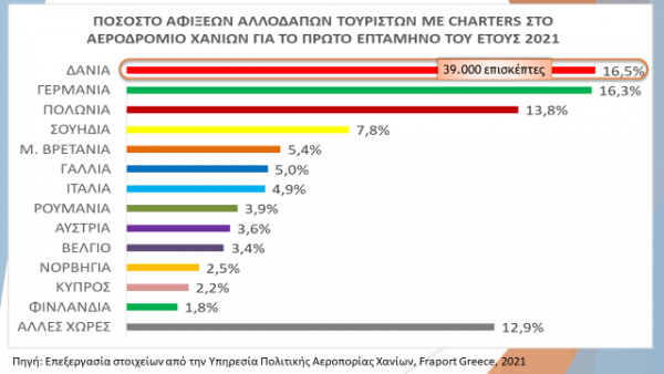 Τα στοιχεία της Fraport Greece αλλά και η έρευνα που πραγματοποιεί κάθε χρόνο το Παρατηρητήριο Τουρισμού Δυτικής Κρήτης για το προφίλ των τουριστών στην περιοχή, καταγράφουν αλλαγές το μίγμα των εθνικοτήτων των ταξιδιωτών που επισκέπτονται την χώρα μας, σαν αποτέλεσμα της κρίσης που προκάλεσε η πανδημία. Νέες εθνικότητες όπως πολωνοί Δανοί και Βέλγοι «στηρίζουν» τον ελληνικό τουρισμό μαζί με τους πιστούς φίλους της Ελλάδος (Γερμανούς Βρετανούς , Ιταλούς και Γάλλους).