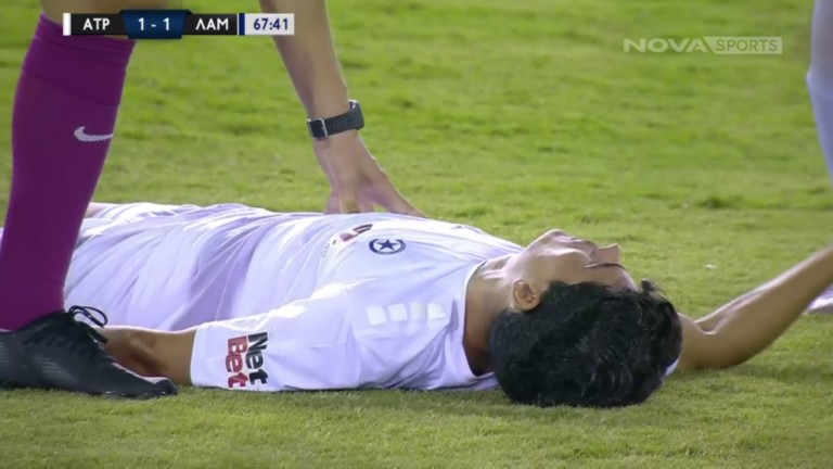 Ο Έλληνας μπακ του Ατρομήτου είχε μία άσχημη πτώση κατά τη διάρκεια του φιλικού παιχνιδιού με τη Λαμία και τρόμαξε τους πάντες, καθώς για μία στιγμή έδειχνε να μην έχει τις αισθήσεις του, «παγώνοντας» όλο το γήπεδο.