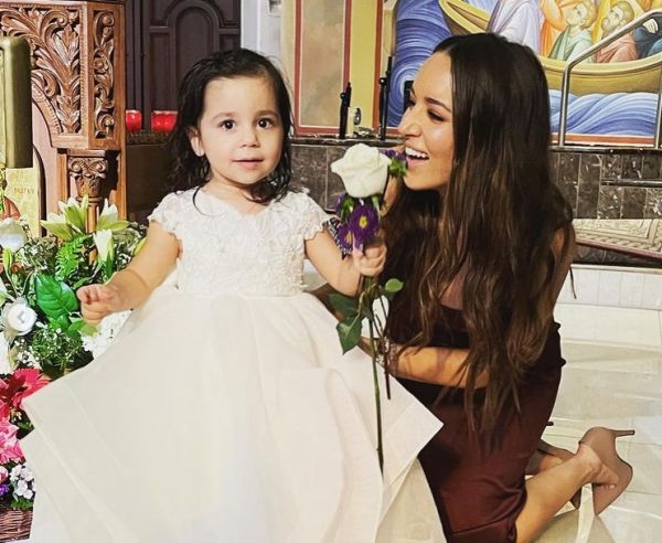 Το ζευγάρι βάφτισε την κόρη καλών τους φίλων, της Όλγας και του Σπύρου Φωτελαριά, σε ελληνορθόδοξη εκκλησία της μεγαλούπολης.