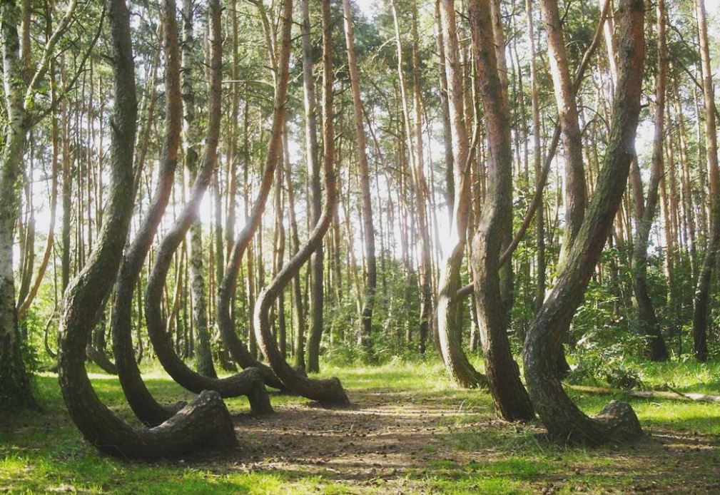 Πρόκειται για το λεγόμενο «Στραβό Δάσος» που βρίσκεται στην Πολωνία και έχει ένα ιδιαίτερο χαρακτηριστικό. Όλα τα δέντρα έχουν μια περίεργη καμπύλη στην βάση του κορμού τους.