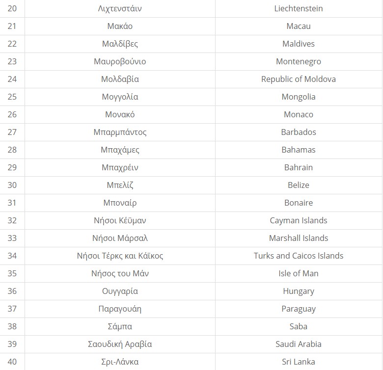 Με βάση το πιο πάνω κριτήριο τα κράτη αυτά, για το φορολογικό έτος 2020, είναι τα ακόλουθα: