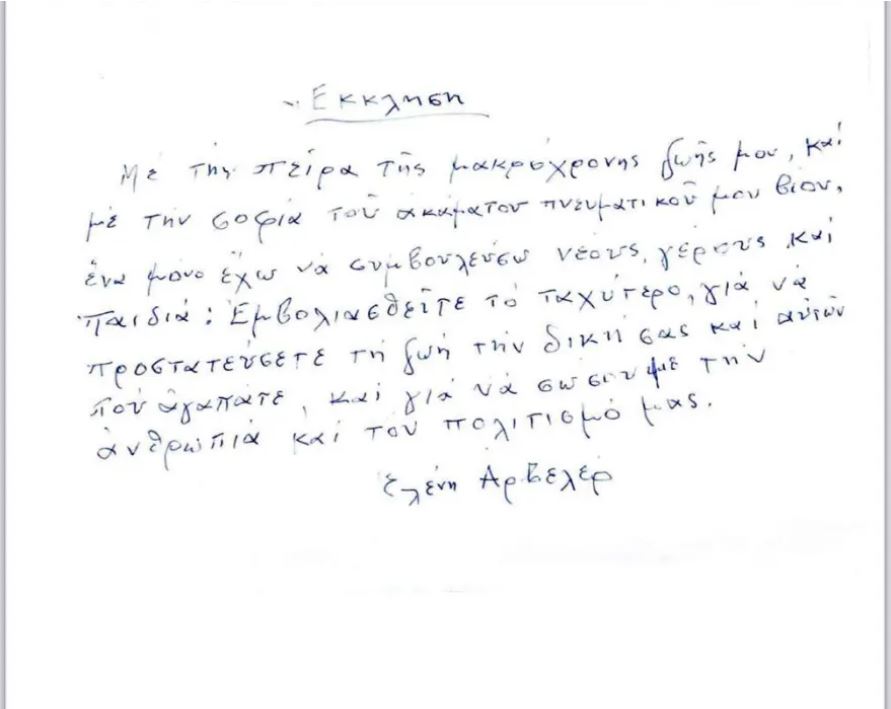 Με την πείρα της μακρόχρονης ζωής μου, και με τη σοφία του ακάματου πνευματικού μου βίου, ένα μόνο έχω να συμβουλεύσω νέους, γέρους και παιδιά: Εμβολιαστείτε το ταχύτερο, για να προστατεύσετε τη ζωή την δική σας και αυτών που αγαπάτε, και για να σώσουμε την ανθρωπιά και τον πολιτισμό μας.