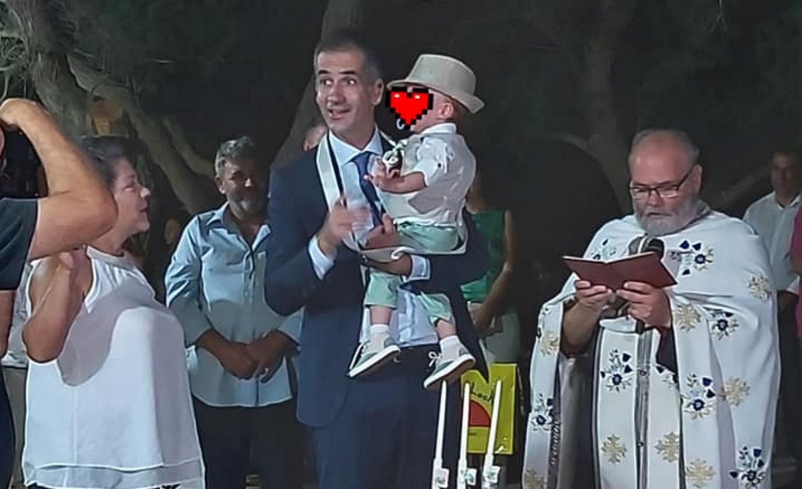 Νονός έγινε ο Κώστας Μπακογιάννης για τον μικρό Ανδρέα στα Χανιά.