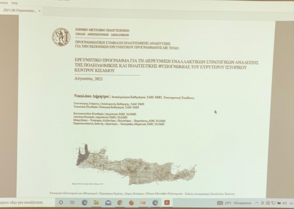 Στο πλαίσιο αυτό έγινε ενημερωτική συνάντηση στα πλαίσια της έναρξης υλοποίησης του «Ερευνητικού Προγράμματος για την Διερεύνηση Εναλλακτικών Στρατηγικών Ανάδειξης της Πολεοδομικής και Πολιτιστικής Φυσιογνωμίας του Ευρύτερου Ιστορικού Κέντρου Κισάμου».