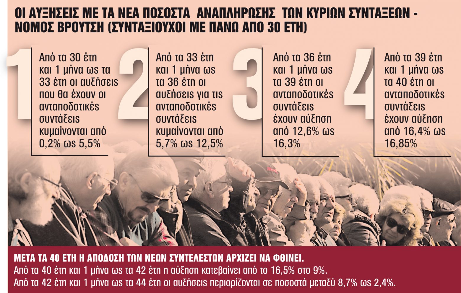 n 100.000 παλαιοί συνταξιούχοι που έλαβαν αύξηση από 1/1/2019 (αρνητική προσωπική διαφορά) με τον νόμο Κατρούγκαλου. Οι εν λόγω συνταξιούχοι θα πρέπει να περιμένουν και νέα αύξηση κατά μέσο όρο 40-50 ευρώ.