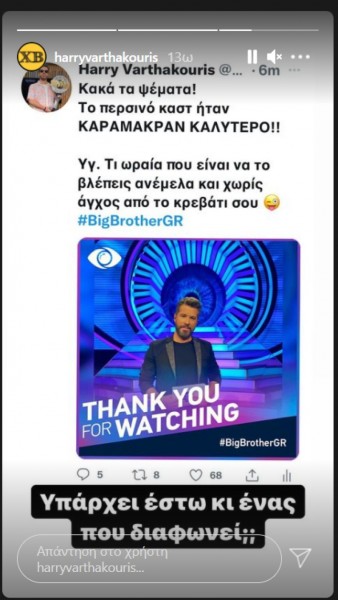 Ο Χάρης Βαρθακούρης, ο περσινός παρουσιαστής του ριάλιτι, που από ότι φαίνεται παρακολουθεί το ριάλιτι «κάρφωσε» με μία ανάρτησή του στο twitter το καστ.