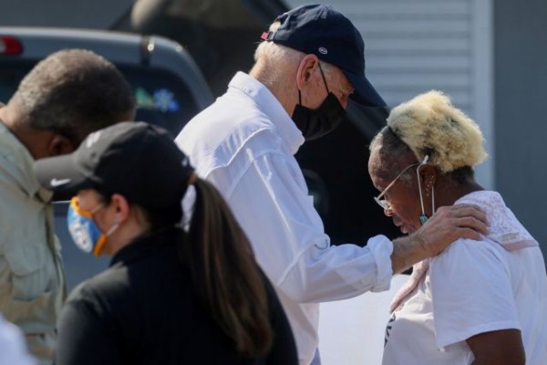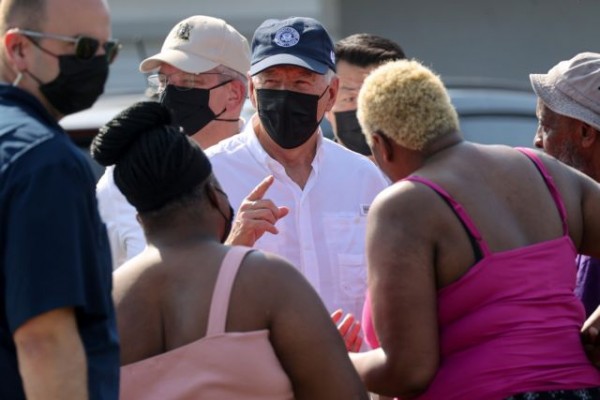 Ο Μπάιντεν επισκέφθηκε την Λαπλάς, μια μικρή πόλη περίπου 50 χιλιόμετρα δυτικά της Νέας Ορλεάνης που υπέστη καταστροφικές ζημιές από τον Άιντα και περιηγήθηκε σε μια γειτονιά γεμάτη με ερείπια και ξεριζωμένα δέντρα.