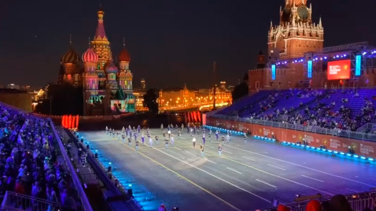 Η ελληνική στρατιωτική ορχήστρα «Θησέας» αφιέρωσε την εμφάνισή της στον συνθέτη, ενώ τα πορτρέτα του προβλήθηκαν πάνω στην ελληνική σημαία με φόντο το Κρεμλίνο.
