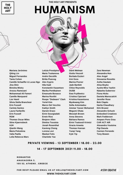 Υπό τον τίτλο «Humanism» καλλιτέχνες από όλο τον κόσμο θα παρουσιάσουν πίνακες ζωγραφικής, γλυπτά, βίντεο και φωτογραφίες εμπνευσμένα από την «ανθρωπότητα» και την υγειονομική κρίση που περνά τα τελευταία χρόνια.