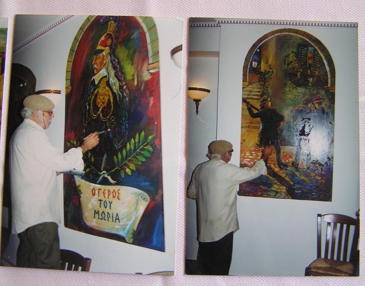 Μεγάλο μέρος του έργου του κοσμεί χώρους εστίασης, κυρίως παραδοσιακές ταβέρνες, στην Πλάκα, ως επί το πλείστον, και στην Ελβετία.