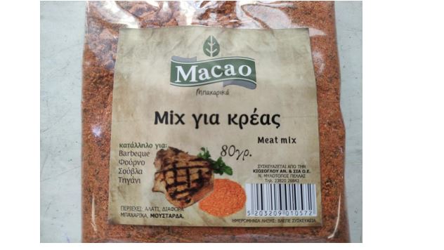 Συγκεκριμένα, ο Οργανισμός, και ειδικότερα η Περιφερειακή Διεύθυνση Κεντρικής Μακεδονίας του φορέα, προέβη σε δειγματοληψία τροφίμου με στοιχεία: «ΜΙΓΜΑ ΜΠΑΧΑΡΙΚΩΝ» με την επωνυμία MACAO MIX ΓΙΑ ΚΡΕΑΣ, με ημερομηνία ανάλωσης κατά προτίμηση 12/2024 και αριθμό παρτίδας LOT 2005, προέλευσης Ε.Ε., σε διαφανή περιέκτη των 80 γρ. που συσκευάζεται και διανέμεται στην Ελλάδα από την ΚΙΟΣΟΓΛΟΥ ΑΝ. & ΣΙΑ ΟΕ – «MACAO» με έδρα τον Νέο Μυλότοπο Π.Ε. Πέλλας.