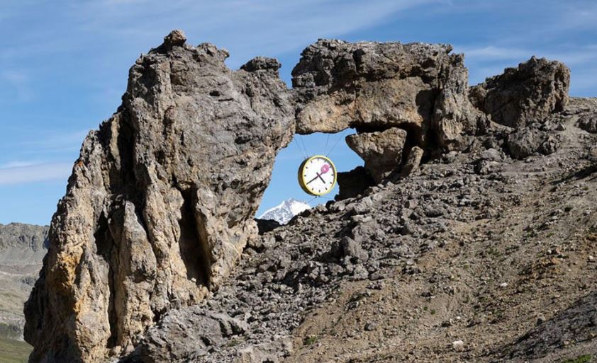 Το καλλιτεχνικό δίδυμο GÆG – οι με βάση το Μόναχο Wolfgang Aichner και Thomas Huber – εγκατέστησε ένα γιγαντιαίο ρολόι σε μία «κάσα» από εντυπωσιακό φυσικό τοπίο προσκαλώντας τους επισκέπτες να βιώσουν από πρώτο χέρι το πώς μπορούν να επηρεάσουν τις κινήσεις των δεικτών.