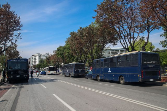 Αυτή την ώρα ισχυρές δυνάμεις βρίσκονται γύρω από τη ΔΕΘ. Κλούβες των ΜΑΤ είναι παρατεταγμένες στην παραλιακή και συγκεκριμένα στη Λεωφόρο Μ. Αλεξάνδρου. Επίσης, το Δημαρχείο Θεσσαλονίκης είναι κλειστό με τοποθετημένα κιγκλιδώματα.