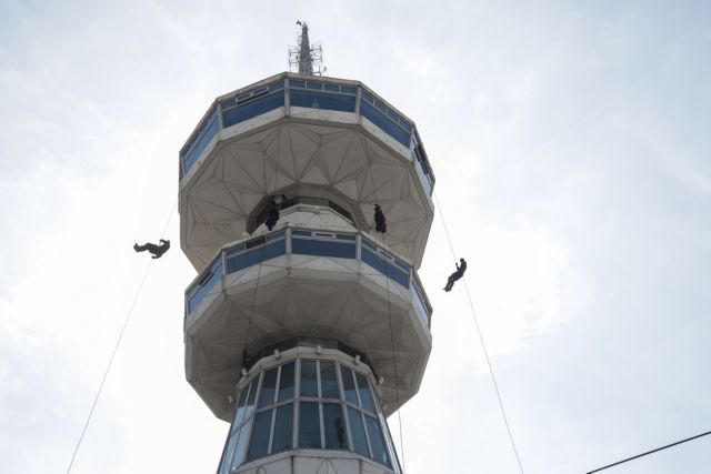 Εντυπωσιακές εικόνες χάρισαν στον πρωθυπουργό Κυριάκο Μητσοτάκη, αλλά και στους επισκέπτες της 85ης ΔΕΘ, τα στελέχη της ειδικής Κατασταλτικής Αντιτρομοκρατικής Μονάδας που… βούτηξαν στο κενό από την κορυφή του Πύργου του ΟΤΕ.