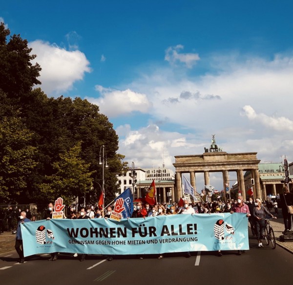 «Η πόλη μάς ανήκει» και «Πολύ ακριβά ενοίκια» ήταν τα βασικά συνθήματα των διαδηλωτών, οι οποίοι, κρατώντας πλακάτ, ξεκίνησαν από την εμβληματική Αλεξάντερπλατς και έκαναν πορεία στο κέντρο της πόλης, υπό τους ήχους μουσικής.