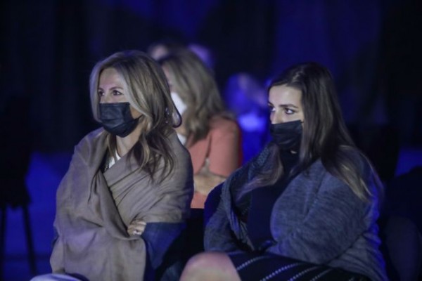 Τόσο η Μαρέβα όσο και η Σοφία Μητσοτάκη φορούσαν καθ’ όλη τη διάρκεια της ομιλίας του πρωθυπουργού τις μάσκες τους, ενώ λόγω της χαμηλής θερμοκρασίας στo Βελλίδειο συνεδριακό κέντρο, είχαν φροντίσει να φορούν η μεν σύζυγος του πρωθυπουργού εσάρπα, η δε κόρη του ζακέτα.