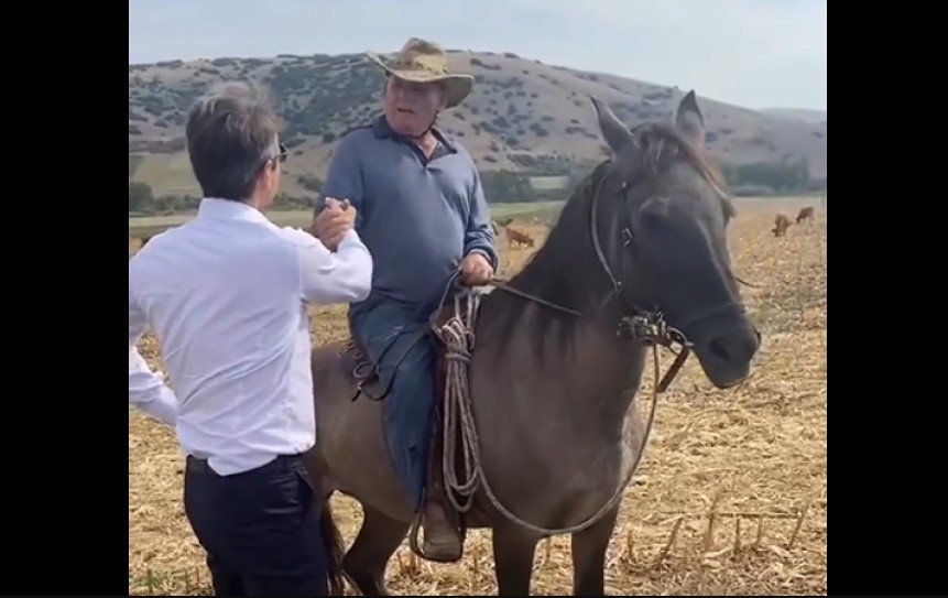 Ο πρωθυπουργός, όπως φαίνεται σε story που ανέβασε στον προσωπικό του λογαριασμό στο Instagram βλέπει έναν καβαλάρη να έρχεται προς το μέρος του και τον πλησιάζει και αυτός. «83 είμαι» του λέει ο κτηνοτρόφος, με τον πρωθυπουργό να του απαντά «με το άλογο τα επιτηρείς όλα εδώ, ε;».