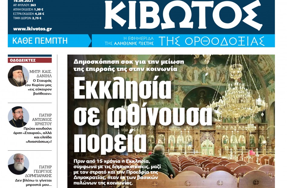 Την Πέμπτη, 16 Σεπτεμβρίου 2021, κυκλοφορεί το νέο φύλλο της Εφημερίδας «Κιβωτός της Ορθοδοξίας»