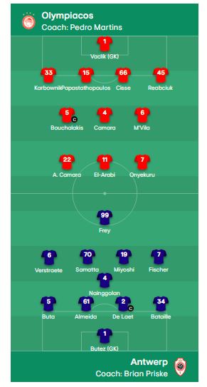 Η εντεκάδα του Ολυμπιακού κόντρα στην Αντβέρπ