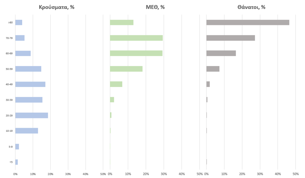 Η διάμεση ηλικία των κρουσμάτων είναι 39 έτη (εύρος 0.2 έως 106 έτη), ενώ η διάμεση ηλικία των θανόντων είναι 78 έτη (εύρος 0.2 έως 106 έτη).