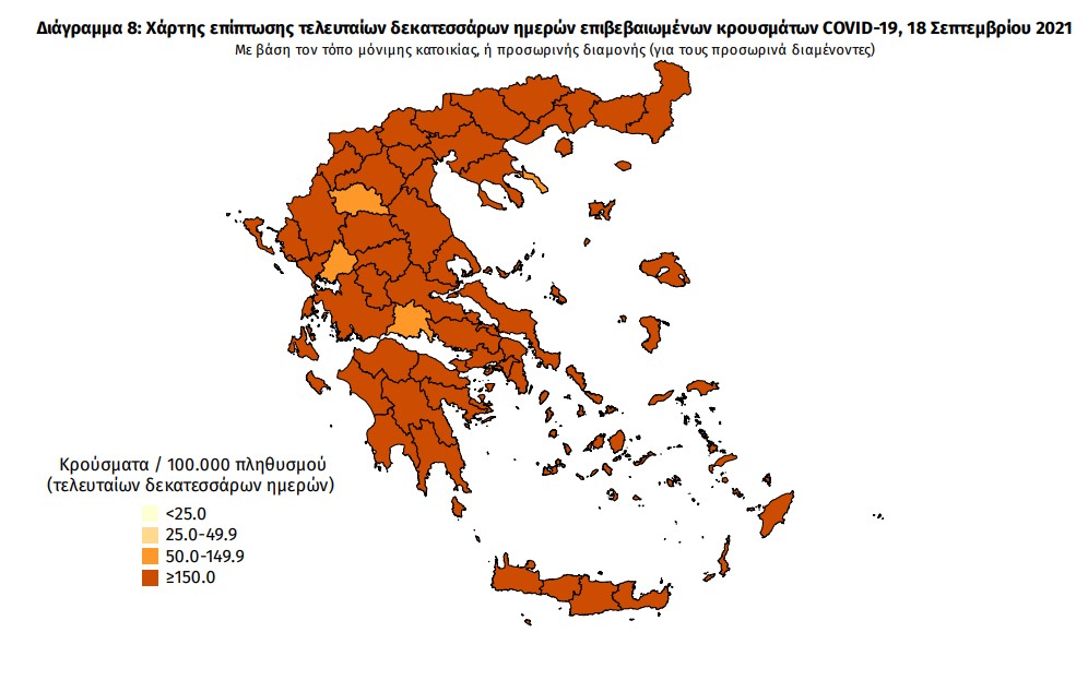 Συμπεριλαμβάνονται τόσο κρούσματα με ιστορικό ταξιδίου (“εισαγόμενα”) όσο και κρούσματα με πιθανή εγχώρια μετάδοση.