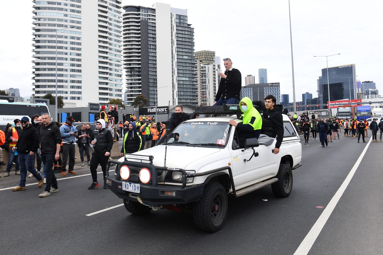 Στους διαδηλωτές δεν περιλαμβάνονταν μόνο εργαζόμενοι στον κατασκευαστικό κλάδο αλλά και όσοι αντιτίθενται στους υποχρεωτικούς εμβολιασμούς και το παρατεταμένο lockdown της Βικτόριας, που καταφέρθηκαν κατά του εμβολίου, του πολιτειακού πρωθυπουργού Νταν Άντριους και του επικεφαλής του συνδικάτου των εργαζομένων, που είχε ταχθεί υπέρ του εμβολιασμού των μελών του.