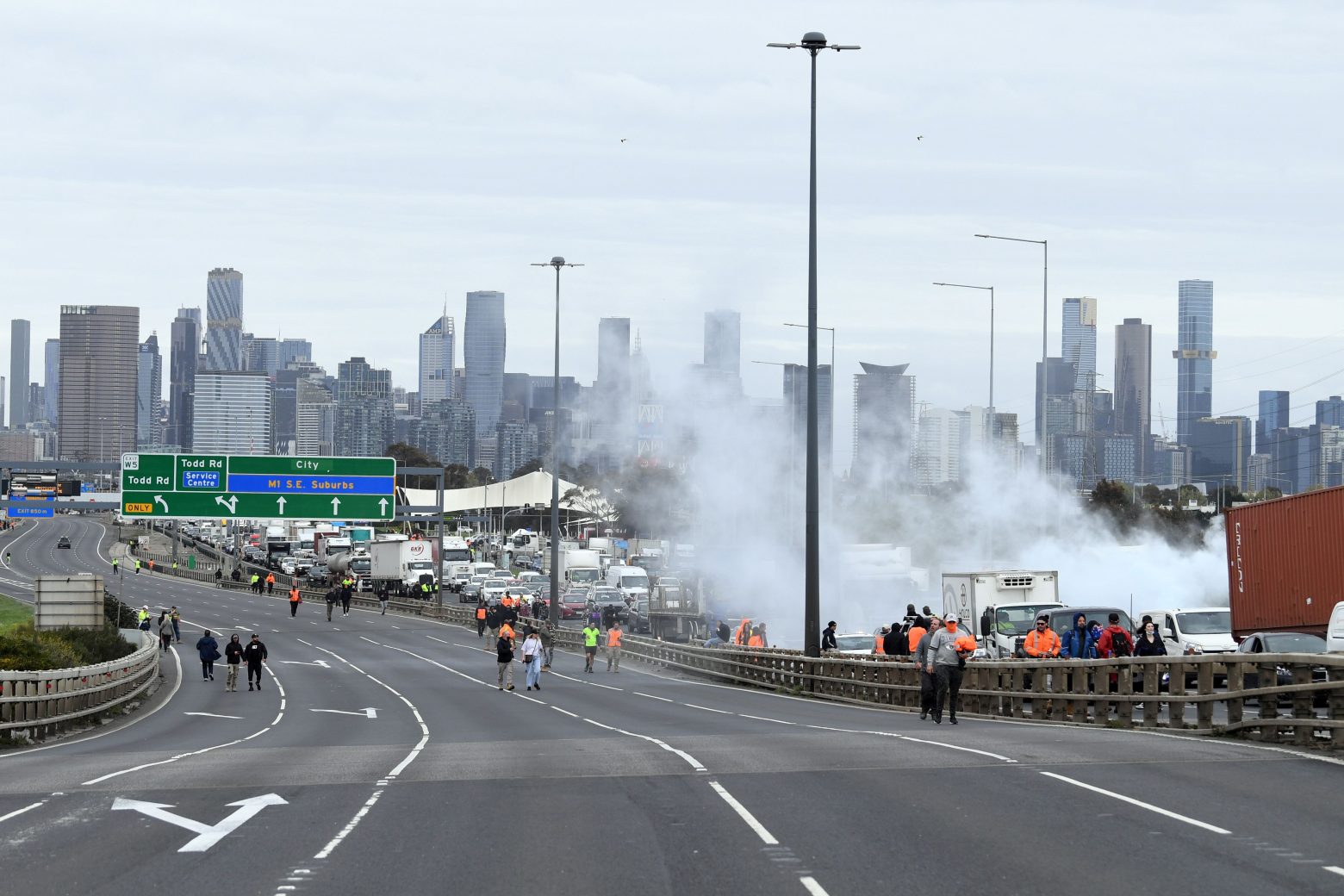 Ήταν η δεύτερη ημέρα διαδηλώσεων στην αυστραλιανή πόλη που τελεί σε καθεστώς lockdown αφού οι αρχές έκλεισαν τα εργοτάξια για δύο εβδομάδες, λέγοντας ότι οι συχνές μετακινήσεις των εργαζομένων εξαπλώνουν τον κοροναϊό.