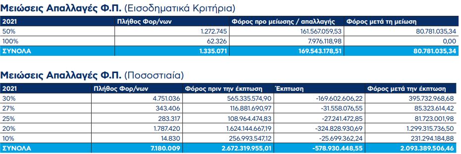 Τα 1.272.745 νοικοκυριά που θα έχουν μειωμένο φόρο κατά 50% θα πληρώσουν συνολικά 80,8 εκατ. ευρώ.