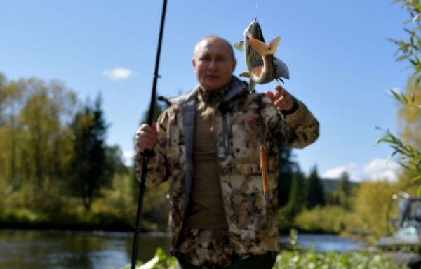 Το Κρεμλίνο δημοσίευσε φωτογραφίες με τον Βλαντίμιρ Πούτιν να στέκεται μέσα σε έναν ποταμό, να ψαρεύει και να πιάνει ένα ψάρι, να περπατάει μέσα σε λιβάδια και να συνομιλεί με τον υπουργό Άμυνας Σεργκέι Σοϊγκού, τη συνήθη συντροφιά του στις διακοπές.