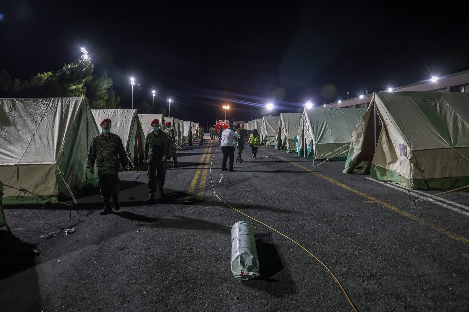 Ένοπλες δυνάμεις, εθελοντές και μέλη του Ερυθρού Σταυρού προχώρησαν με ταχύτατους ρυθμούς στην εγκατάσταση των σκηνών στο εκθεσιακό κέντρο Αρκαλοχωρίου. Τις εργασίες συνεχίζει να επιθεωρεί κλιμάκιο με επικεφαλής τον υπουργό Κλιματικής Κρίσης και Πολιτικής Προστασίας, Χρήστο Στυλιανίδη, ο οποίος βρίσκεται στην περιοχή.