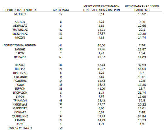 Ακόμα, 144 κρούσματα καταγράφει η Λάρισα, 71 η Πιερία, 61 η Καβάλα και 50 η Ημαθία.