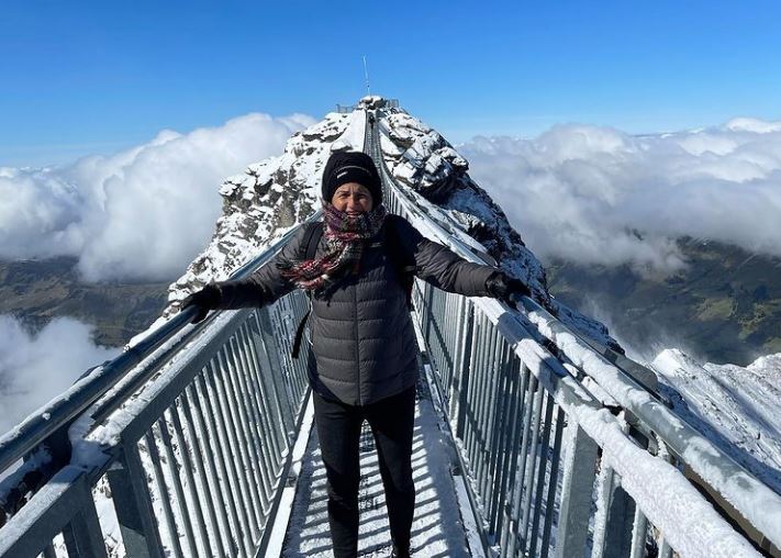 Επιπλέον, ανάρτησε μία φωτογραφία, πάνω στην γέφυρα που ενώνει τις δύο κορυφές των βουνών. Με ενθουσιασμό περιγράφει την εμπειρία της στην λεζάντα. Όπως αναφέρει, ο Οκτώβριος είναι για εκείνη ο μήνας της αδρεναλίνης.