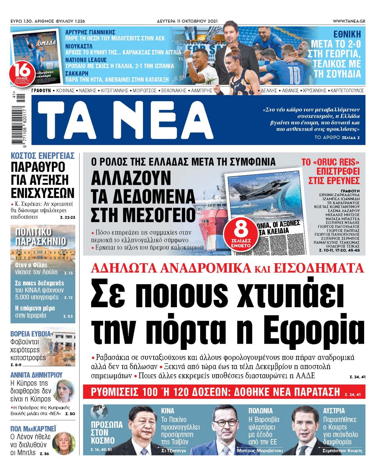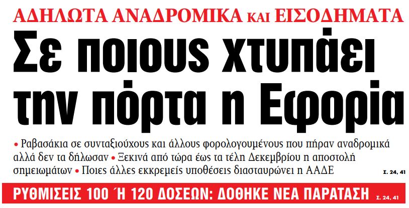 Στα «ΝΕΑ» της Δευτέρας – Σε ποιους χτυπάει την πόρτα η Εφορία