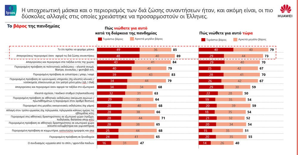 Νέα έρευνα της IPSOS, η οποία διεξήχθη σε 10 χώρες (Αυστρία, Βουλγαρία, Κροατία, Τσεχία, Ελλάδα, Ουγγαρία, Πολωνία, Ρουμανία, Σερβία και Τουρκία) με πρωτοβουλία της HUAWEI, αποκαλύπτει το πόσο μεγάλες αλλαγές έφερε η πανδημία τόσο στη φυσική κατάσταση όσο και στην ψυχική υγεία των πολιτών: αύξηση βάρους, κακή φυσική κατάσταση, άγχος, αϋπνία, πεσμένη διάθεση είναι λίγα μόνο από τα συμπτώματα που προκάλεσαν οι μήνες καθιστικής ζωής και περιορισμένης κοινωνικοποίησης.