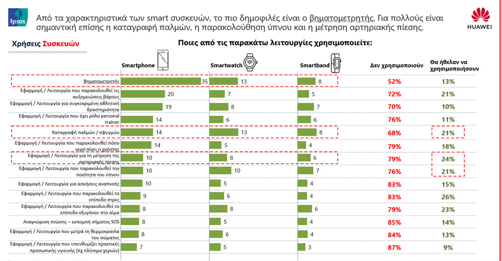 Βάσει των ευρημάτων της έρευνας, οι πολίτες αναγνωρίζουν τις επιπτώσεις που είχαν οι μήνες του lockdown στα σώματα και την ψυχολογία τους και βρίσκονται πλέον στο στάδιο να θέλουν να κάνουν κάτι για αυτό, από το να καταπιαστούν με μια νέα αθλητική δραστηριότητα ή να ξεκινήσουν ασκήσεις αναπνοής και διαλογισμού, μέχρι το να ταξιδέψουν εντός και εκτός Ελλάδας ή να κάνουν δίαιτα και να κλείσουν άμεσα ραντεβού για πλήρες ιατρικό check-up. Τι μπορεί να τους δώσει κίνητρο και την έξτρα ώθηση που χρειάζονται για να πάρουν τη ζωή στα χέρια τους; Οι έξυπνες συσκευές, όπως smartwatches και smartbands, οι οποίες διαθέτουν προηγμένη τεχνολογία και λειτουργίες ακριβείας για τη συνεχή παρακολούθηση της υγείας και της φυσικής κατάστασης των χρηστών.