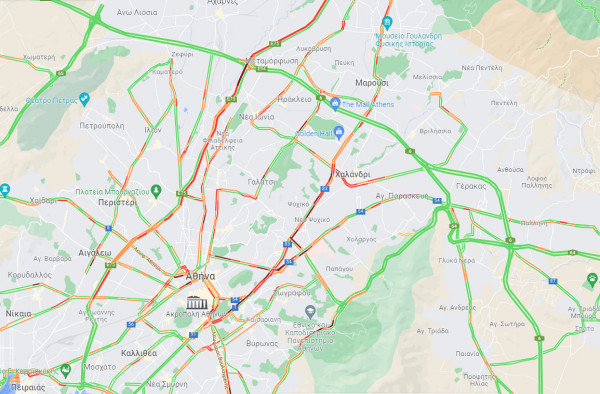 Κυκλοφοριακή «ασφυξία» στην πρωτεύουσα και το λεκανοπέδιο. Αλεξάνδρας, Μεσογείων και Αθηνών-Λαμίας βρίσκονται, μεταξύ άλλων, στο «κόκκινο».