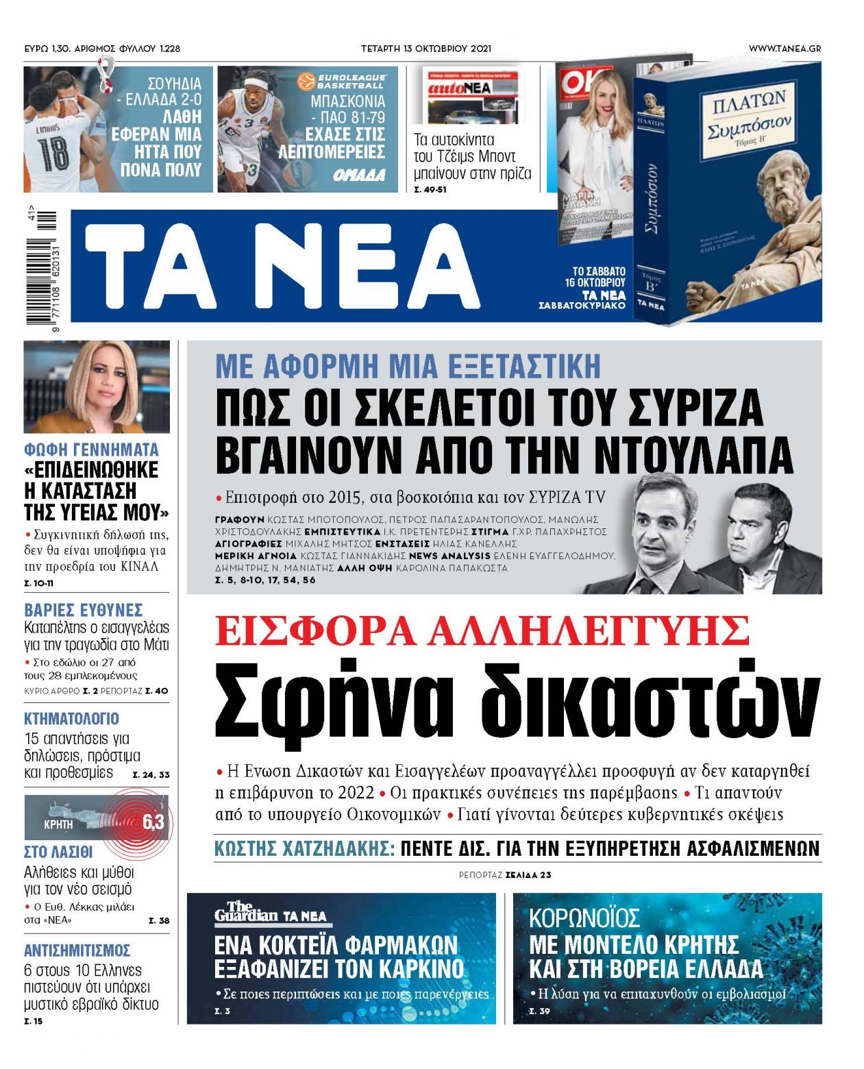 Στα «Νέα» της Τετάρτης – Εισφορά αλληλεγγύης – Σφήνα δικαστών