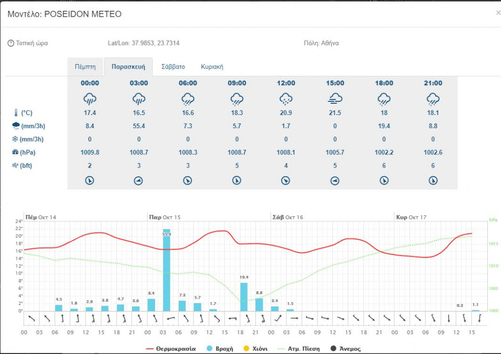 Ιδιαίτερη ανησυχία προκαλεί το έγκυρο προγνωστικό μοντέλο Poseidon System, το οποίο κάνει λόγο για πρωτόγνωρες καταστάσεις μέσα στη νύχτα, κυρίως από τις 3 τα ξημερώματα της Παρασκευής.