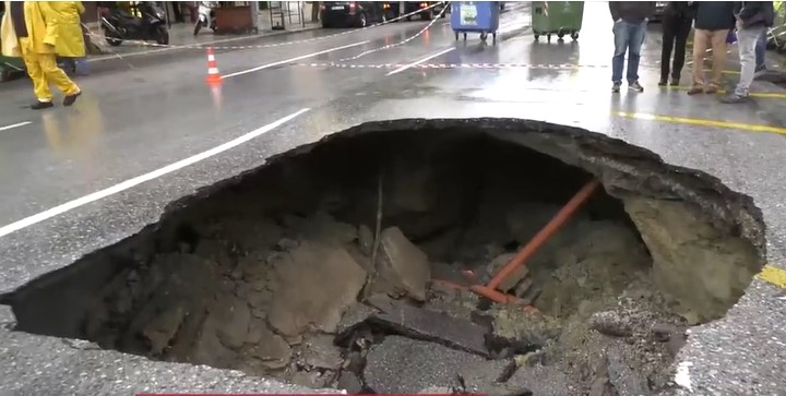 Κάτω από το οδόστρωμα που υποχώρησε λόγω του καιρού, το έδαφος ήταν κούφιο. Όπως φαίνεται και στις εικόνες το μέγεθος της τρύπας μπορεί να συγκριθεί με σπηλιά.