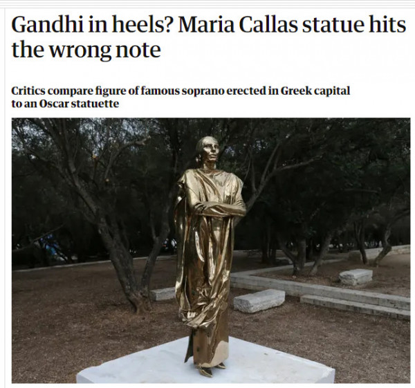 Κατακεραυνώνει ο Guardian για το άγαλμα της Μαρίας Κάλλας – «Ο Γκάντι σε τακούνια;»