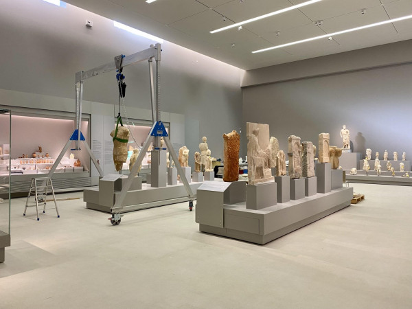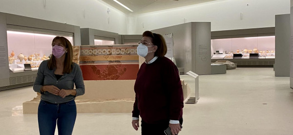 Η υπουργός περιήλθε τους χώρους στους οποίους έχουν μεταφερθεί τα εκθέματα (μια εργασία επίπονη, που απαιτεί ειδικές δεξιότητες και συνεργασία πολλών ειδικοτήτων, επιστημονικών και τεχνικών) από το παλαιό μουσείο και τις αποθήκες.