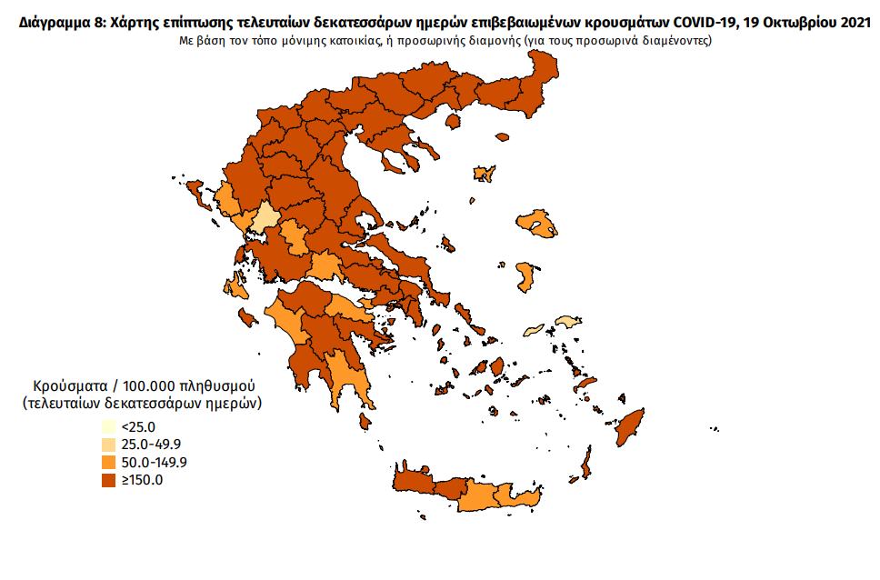 Με βάση τα επιβεβαιωμένα κρούσματα των τελευταίων 7 ημερών, 124 θεωρούνται σχετιζόμενα με ταξίδι από το εξωτερικό και 2.144 είναι σχετιζόμενα με ήδη γνωστό κρούσμα.