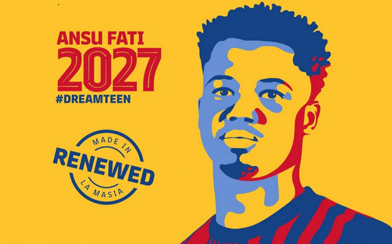 Ο Ανσού Φατί είναι το νέο μεγάλο αστέρι της Μπαρτσελόνα και θα μείνει στο «Καμπ Νου». Το βράδυ της Τετάρτης οι Καταλανοί ανακοίνωσαν την επέκταση της συνεργασίας τους με τον 19χρονο άσο ο οποίος υπέγραψε συμβόλαιο ως το 2027, με ρήτρα στο ένα δισ. ευρώ!