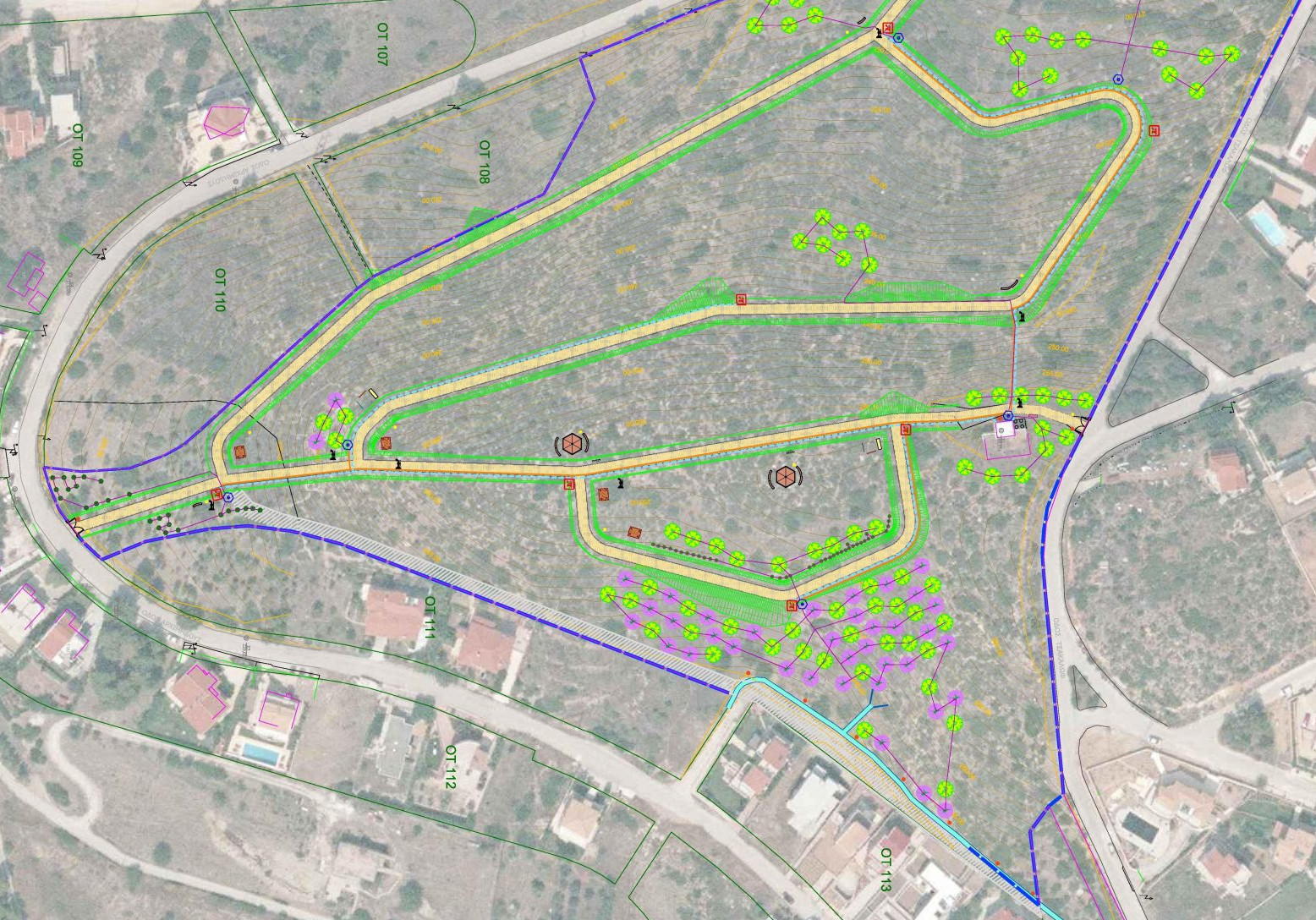 Προβλέπεται εκτεταμένη φύτευση περισσοτέρων των 1.000 δέντρων και θάμνων ενώ μεταξύ άλλων, θα τοποθετηθούν κιόσκια, τραπεζόπαγκοι, παγκάκια, βρύσες καθώς και υπαίθριο γυμναστήριο. Το πάρκο θα διαθέτει πλήρες δίκτυο πυρόσβεσης, ύδρευσης και άρδευσης, αντιπυρική ζώνη και τάφρο ομβρίων.