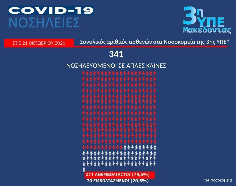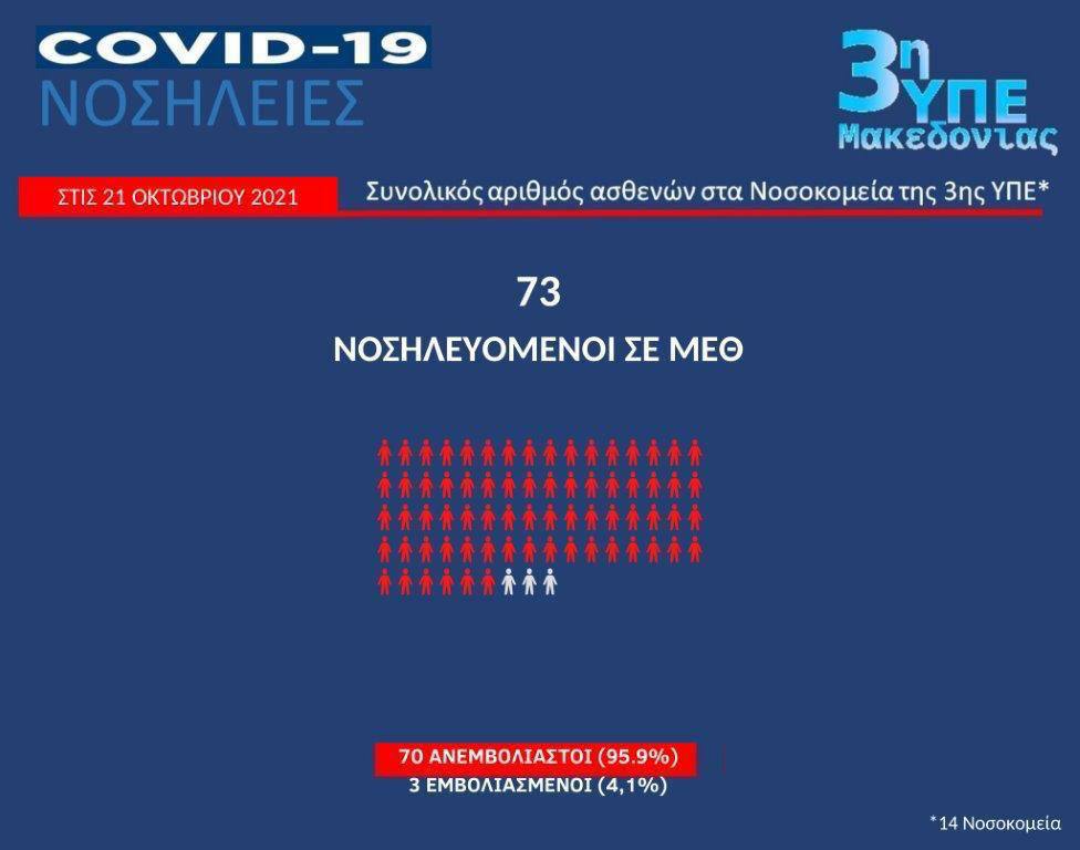 Όπως είπε, στην 3η ΥΠΕ, 73 άνθρωποι βρίσκονται νοσηλευόμενοι σε ΜΕΘ εκ των οποίων οι 70 είναι ανεμβολίαστοι και μόλις 3 εμβολιασμένοι.